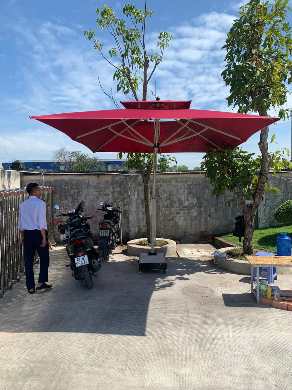 Dù lệch tâm vuông bền đẹp, sang trọng, che nắng mưa hiệu quả. Lựa chọn lý tưởng cho quán cà phê, nhà hàng, sân vườn, hồ bơi ngoài trời.