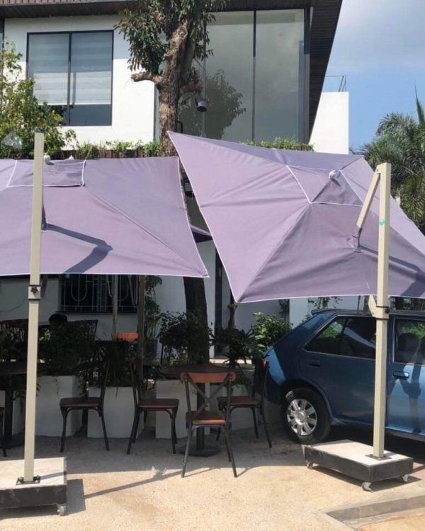 Trong những không gian ngoài trời như sân vườn gia đình, quán cà phê, nhà hàng hay khu nghỉ dưỡng, việc lựa chọn một chiếc dù che nắng mưa chất lượng không chỉ mang đến sự tiện lợi mà còn góp phần nâng cao tính thẩm mỹ tổng thể. Dù dáng nghiêng vuông 2.5mx2.5m màu tím chính là sự lựa chọn hoàn hảo cho những ai đang tìm kiếm sự kết hợp hài hòa giữa công năng vượt trội và phong cách thiết kế tinh tế.