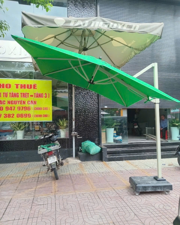 Trong những không gian ngoài trời như sân vườn gia đình, quán cà phê, nhà hàng hay khu nghỉ dưỡng, một chiếc dù chất lượng không chỉ giúp che nắng mưa hiệu quả mà còn tạo điểm nhấn thẩm mỹ đầy tinh tế. Dù dáng nghiêng vuông 2.5mx2.5m màu xanh chuối non chính là lựa chọn hoàn hảo, kết hợp giữa sự bền bỉ và thiết kế ấn tượng.