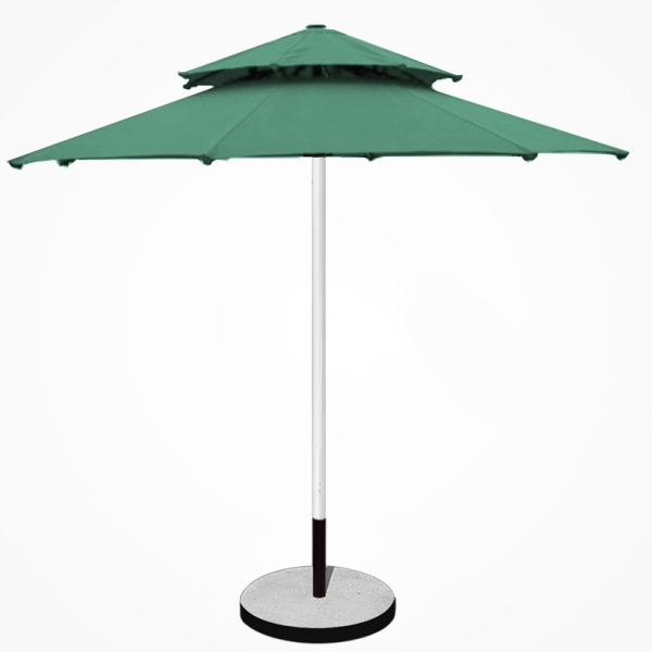 Đế dù bằng đế tròn bê tông bọc thép nặng lên đến 26kg->28kg giúp đảm bảo sự ổn định tối đa, đặc biệt trong những điều kiện gió mạnh. Đế được thiết kế tinh xảo để phù hợp với thiết kế tổng thể của dù.