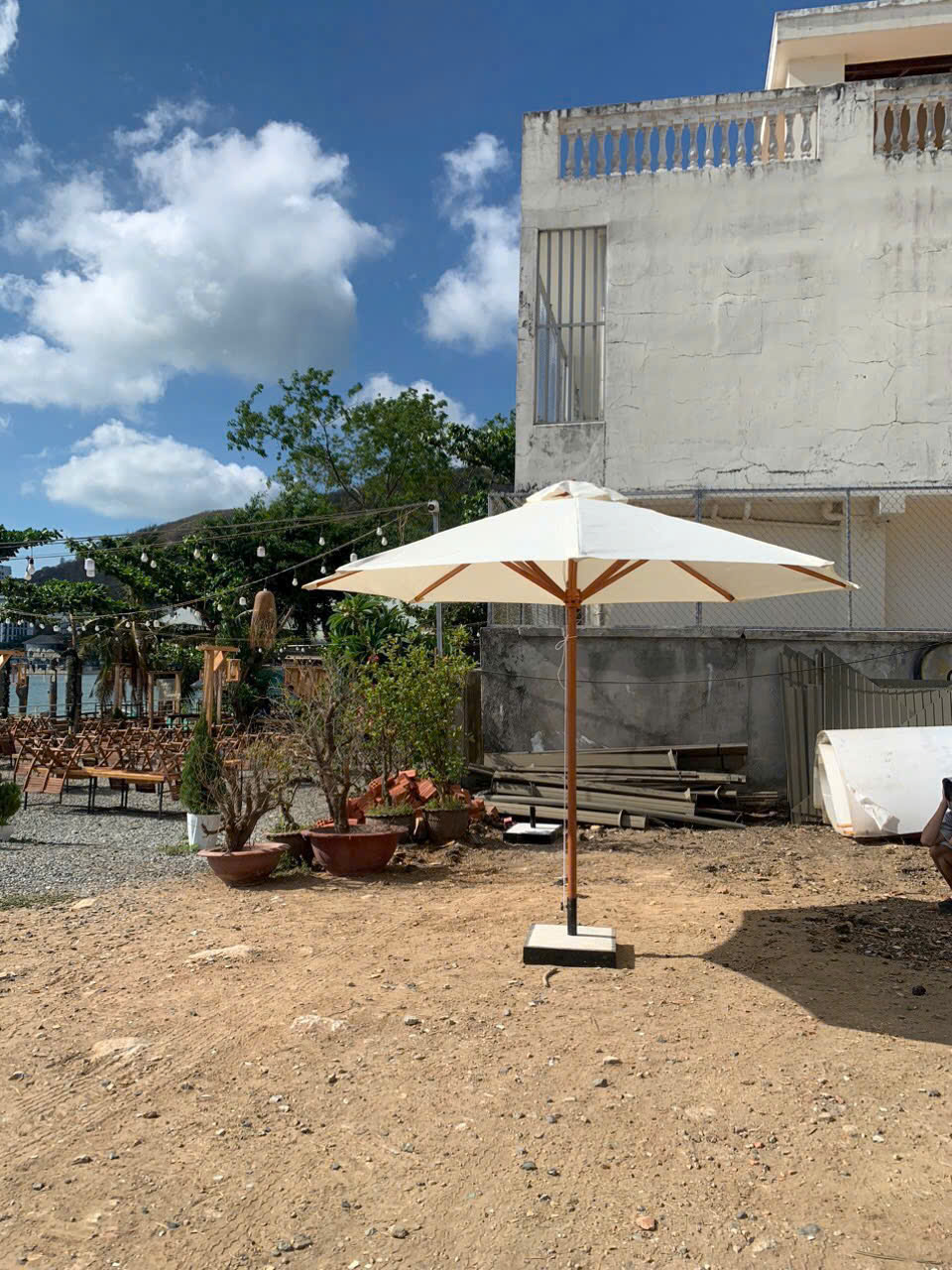 Nếu không gian hẹp, hãy chọn dù lệch tâm xoay 360° để tiết kiệm diện tích.