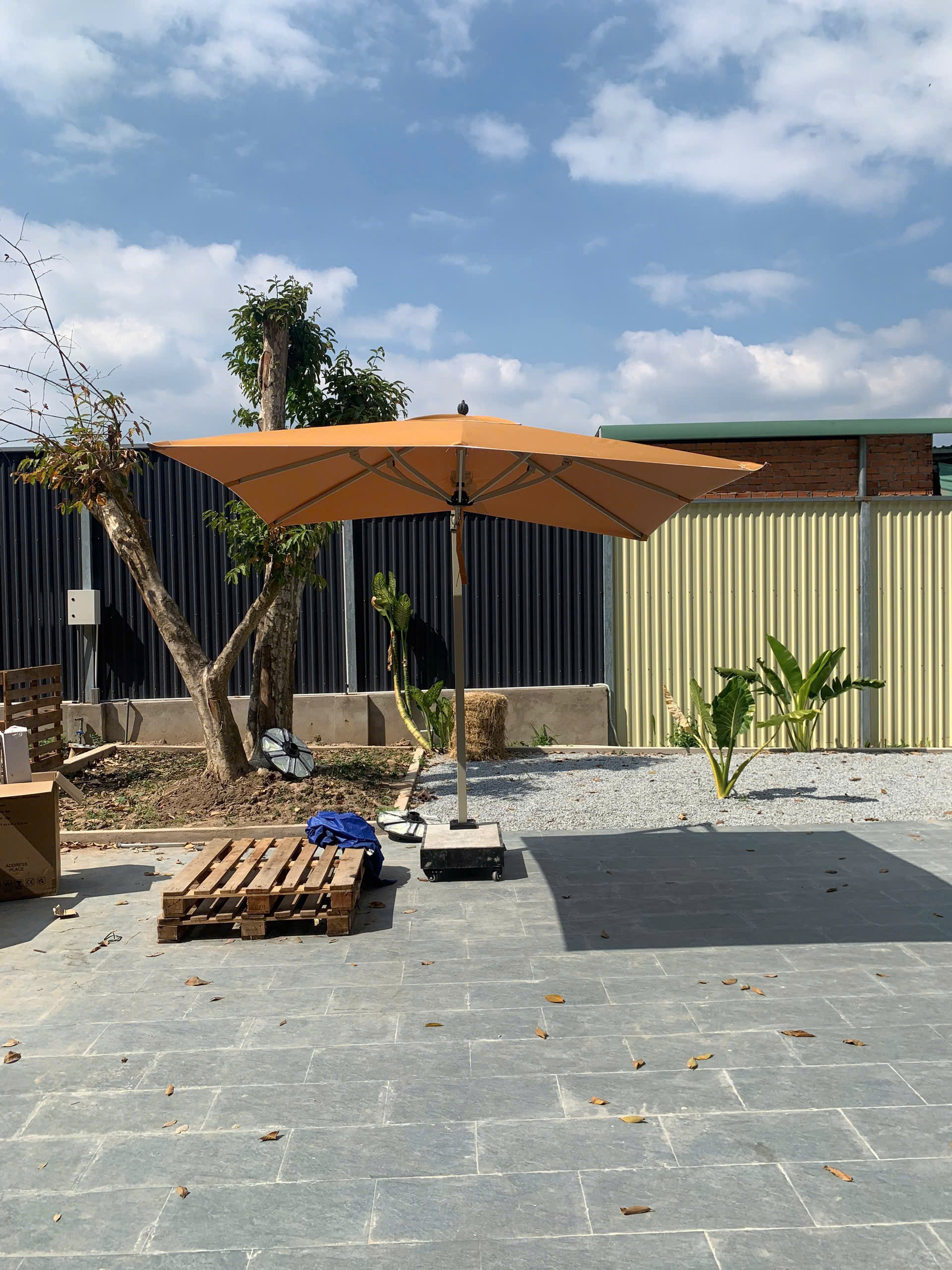 Dù lệch tâm vuông bền đẹp, sang trọng, che nắng mưa hiệu quả. Lựa chọn lý tưởng cho quán cà phê, nhà hàng, sân vườn, hồ bơi ngoài trời.