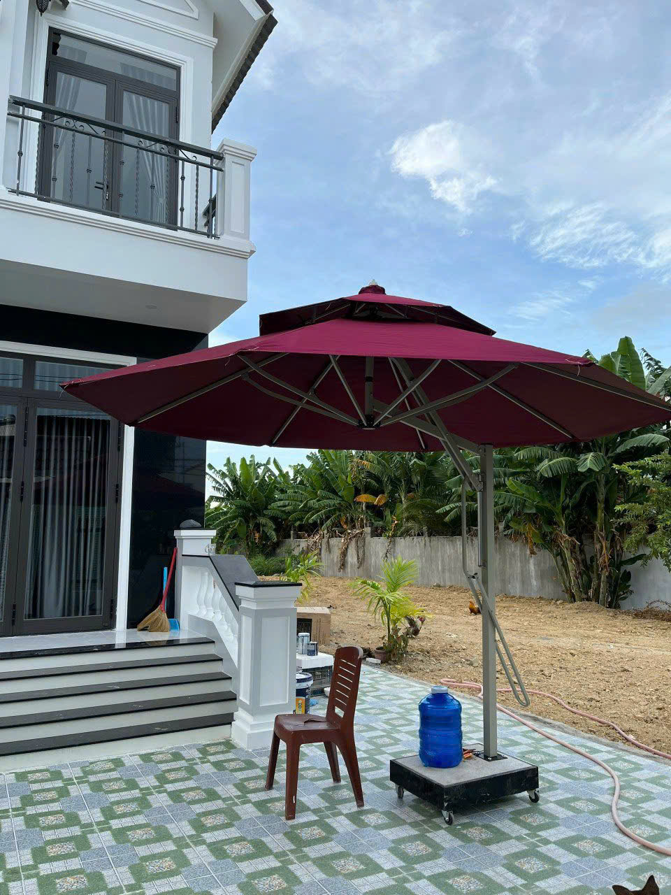 Dù sân vườn cao cấp – Khung inox, vải polyester chống thấm, bền màu, tuổi thọ lâu dài.
