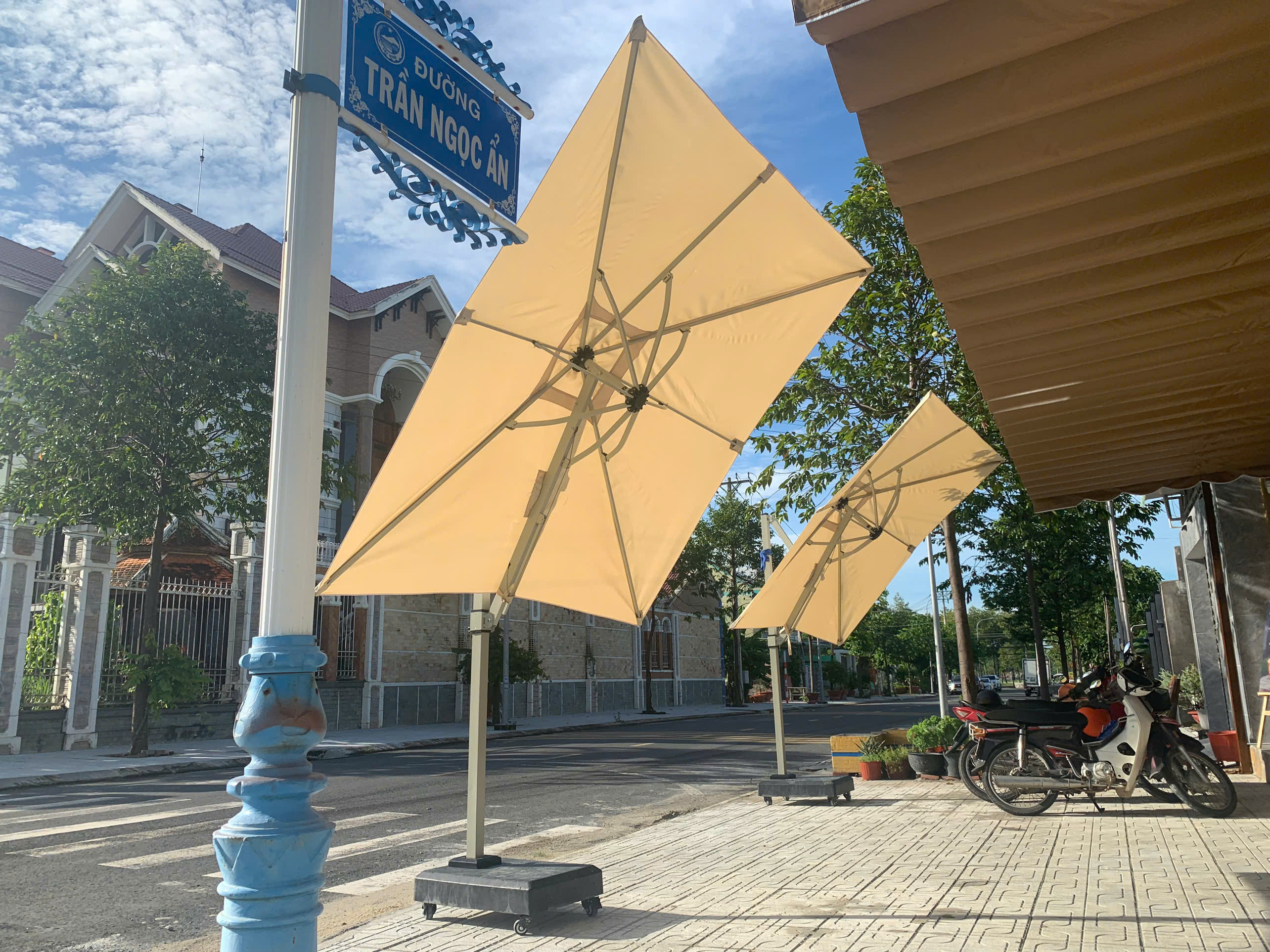 Dù lệch tâm vuông hoặc Dù lệch tâm tròn đang là lựa chọn hàng đầu cho quán café, resort, khách sạn, hồ bơi nhờ thiết kế hiện đại, sang trọng và khả năng che phủ tối ưu.