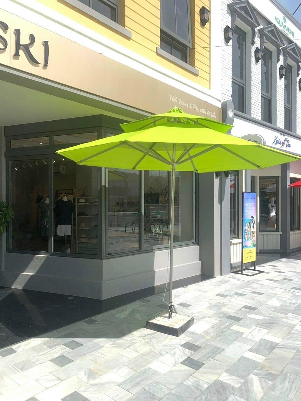Kích thước lớn – độ che phủ cực rộng, thay thế mái che cố định – thích hợp khu du lịch, resort, sân vườn lớn, bãi xe, trường học.